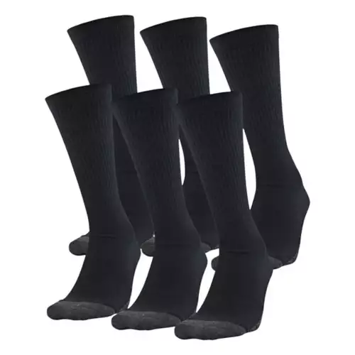 The Under Armour Performance Tech Crew 6 Pack Socks are the perfect socks for the active person. This pack of Under Armour crew socks features six pairs of mid-calf socks made with performance materials. HeatGear fabric keeps your feet cool and dry by wicking sweat and drying quickly. Plus, your feet will stay fresh longer with ventilation channels and anti-odor technology. These socks also feature dynamic arch support and strategic cushioning that provide all-day comfort and support. From work to workout, stay comfortable in the Under Armour Performance Tech Crew 6 Pack Socks.