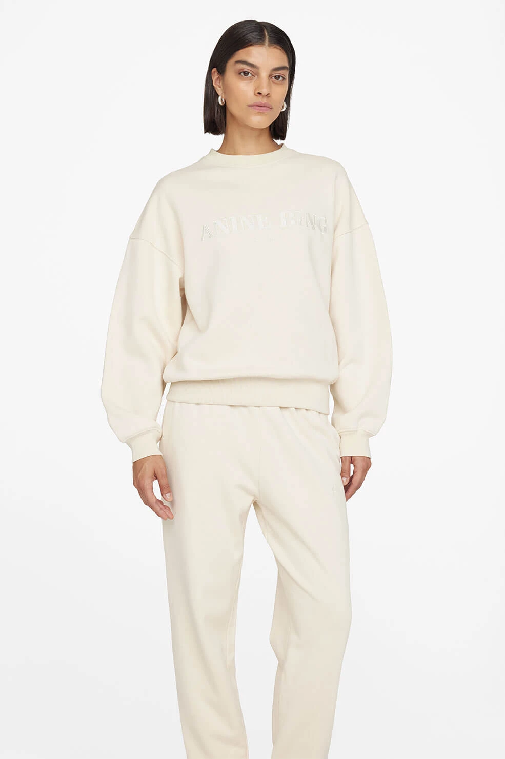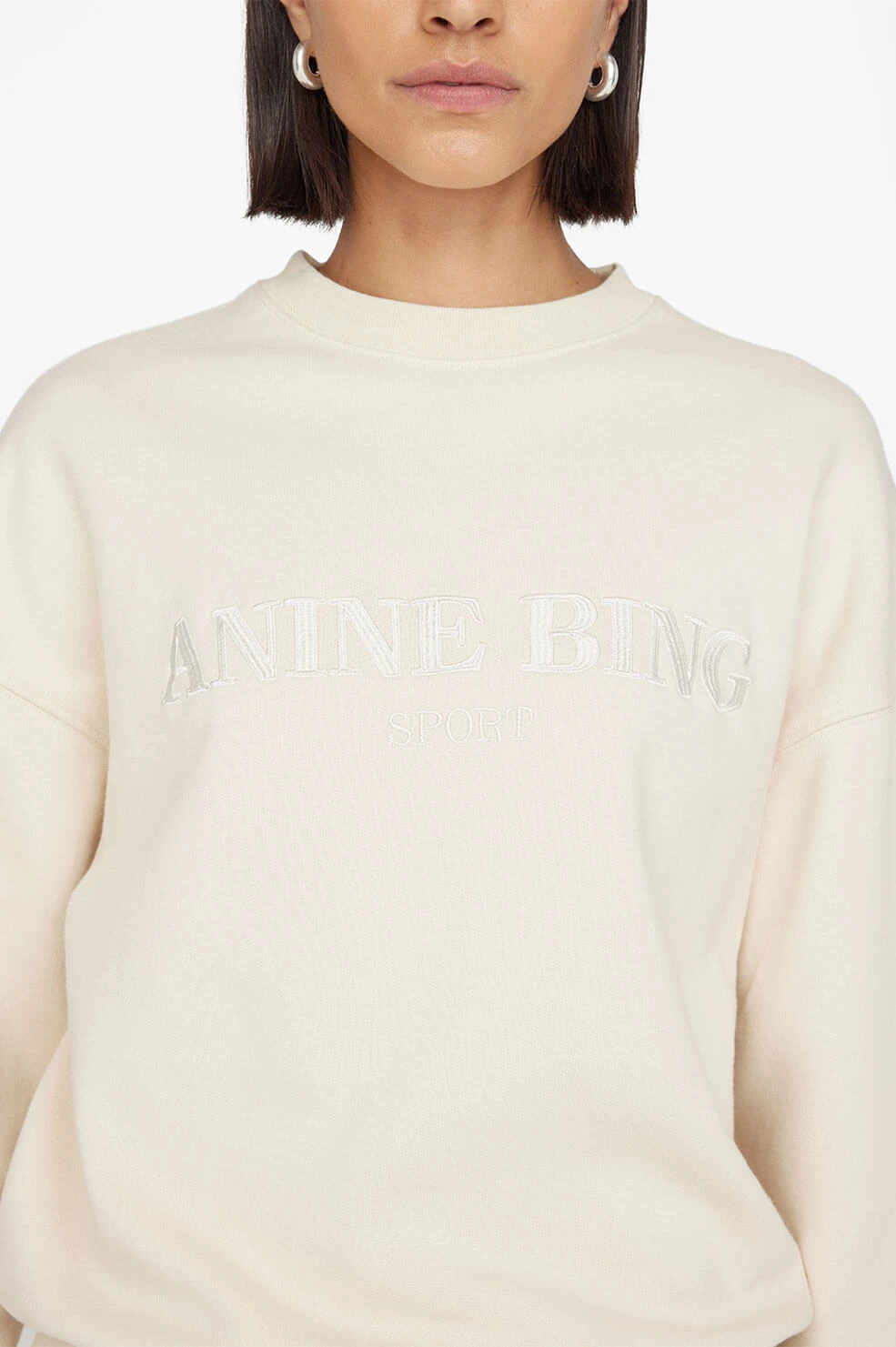 The best-selling Evan Sweatshirt from Anine Bing Sport updated in her signature heavyweight 100% cotton fleece, garment dyed in a fresh cream colorway.