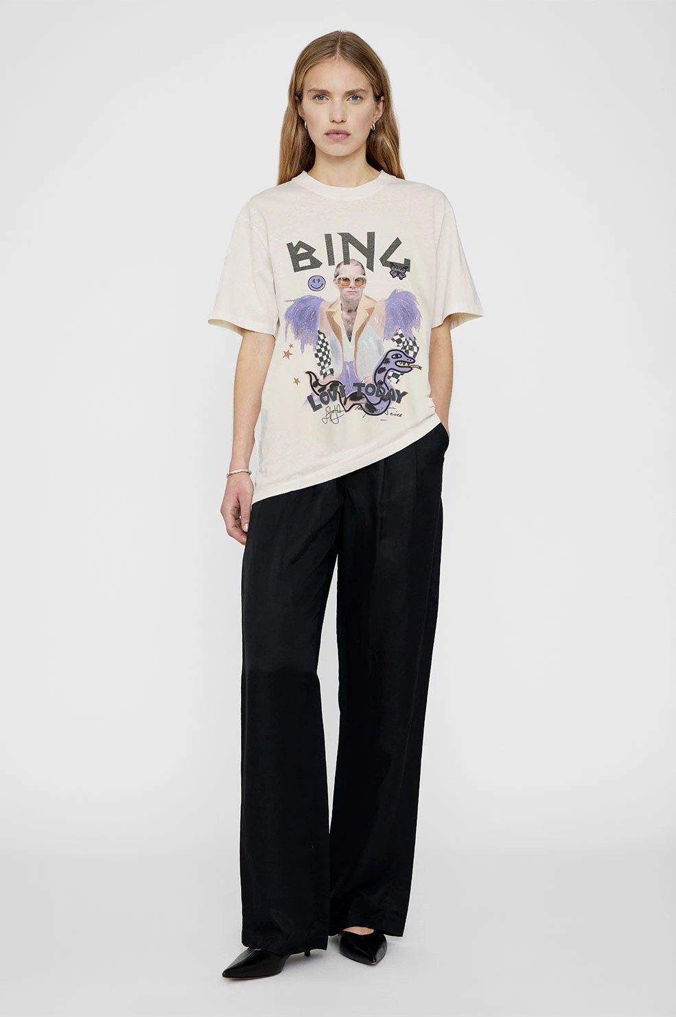 The Anine Bing Lili Tee Elton John in Cream is the perfect vintage-inspired tee. In collaboration with global graphic artist Humberto Cruz of @IScreamColour and legendary photographer Terry O’Neill. This limited edition tee features a printed image of pop legend Elton John, accentuated by quirky illustrations. Pair yours with anything from your favourite skirt to tailored pants for a relaxed office look.