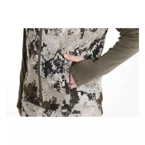 The Men’s Scheels Outfitters Antler River Vest is the perfect layer to wear on your next hunt. This hunting vest offers non-bulky warmth so you’re completely free to move. The DWR finish repels cold rain and moisture, and the polyester fleece fabric traps in your body heat. This camo vest features our SCHEELS-exclusive West River camo to match your West River layering system and keep you totally concealed. Plus, a tree harness exit port with silent snaps makes this hunting vest stealth and adaptable. Add the Men’s Scheels Outfitters Antler River Vest to your layering system this hunting season.
