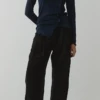 - Mid-rise fit sitting right above the hip bones, loose throughout with long inseam.